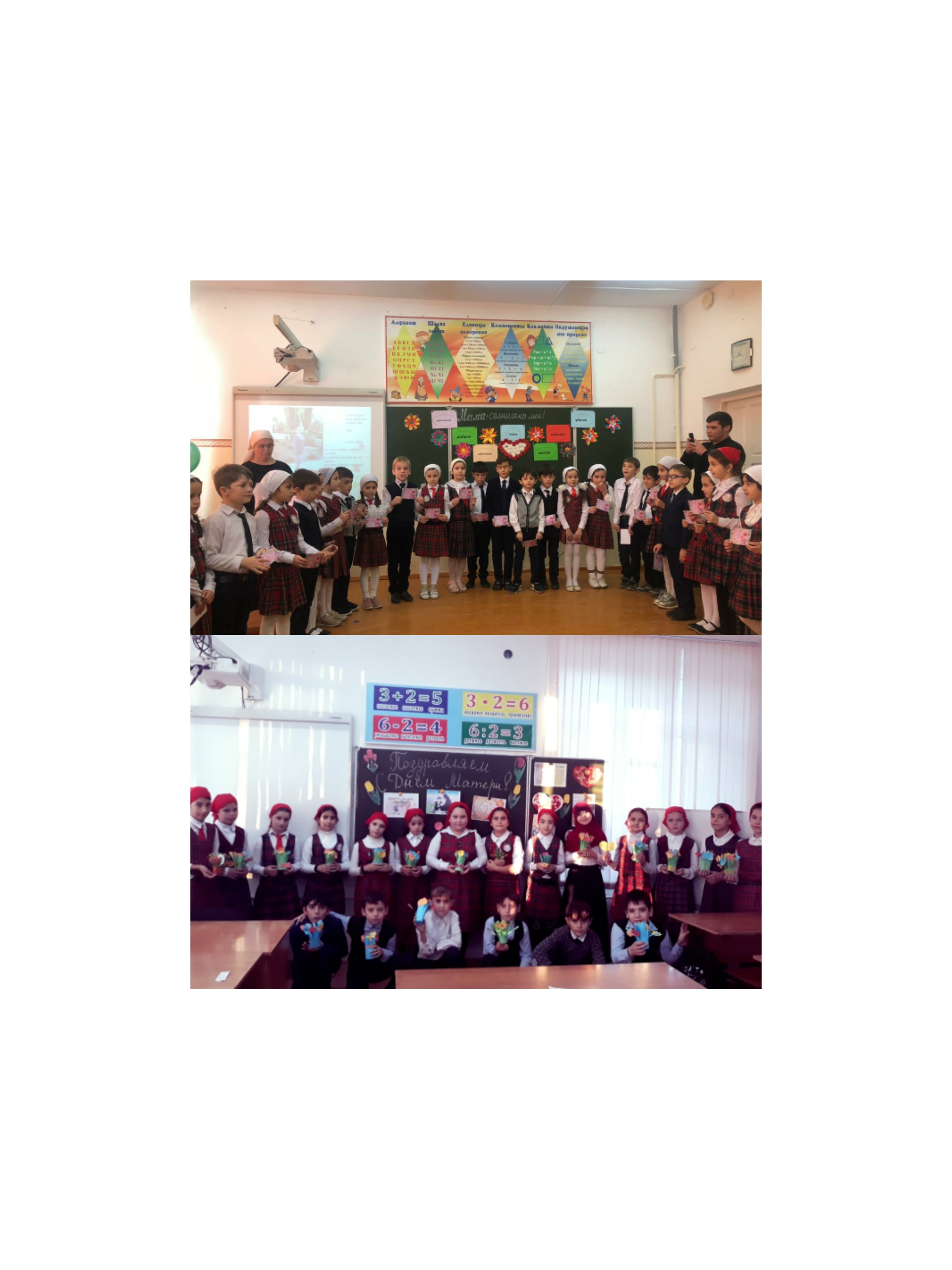 В последнее воскресенье ноября в России отмечают особый праздник—День матери.Выступая перед самыми дорогими гостями-мамами, директор школы Магомадова Зарета Хусаиновна поздравила их с праздником , пожелала здоровья и счастья им и их детям!