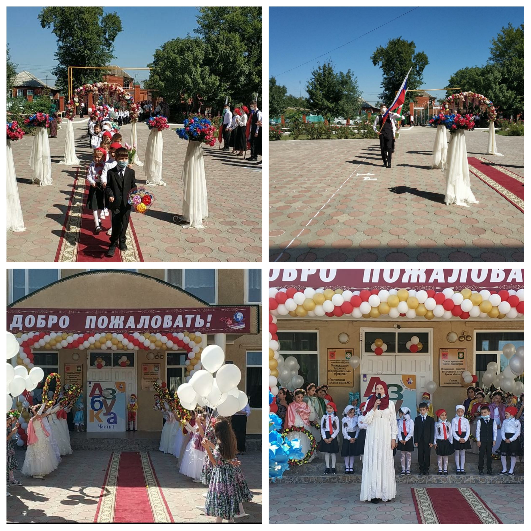 Сегодня в МБОУ "Гудермесская СШ 7" прошла торжественная линейка, посвященная Дню Знаний. На мероприятии приняли участие учащиеся 1-х и 10 классов.С тёплыми приветственными словами встретили сегодня в школе самых дорогих гостей праздника-первоклашек. В их честь старшеклассники исполнили танец цветов. У входа в школу их встречали Буратино и Мальвина с огромной Азбукой. От своих старших товарищей ребята получили ключ знаний и обещали учиться на "хорошо" и "отлично".В своем выступлении директор школы Джалилова Медина Салмановна поздравила всех с новым учебным годом и пожелала ,чтобы знания, которые получат они в школе, были прочными и полезными, а увлечения - интересными, постичь все азы наук и достичь высоких скоростей на пути к успеху!