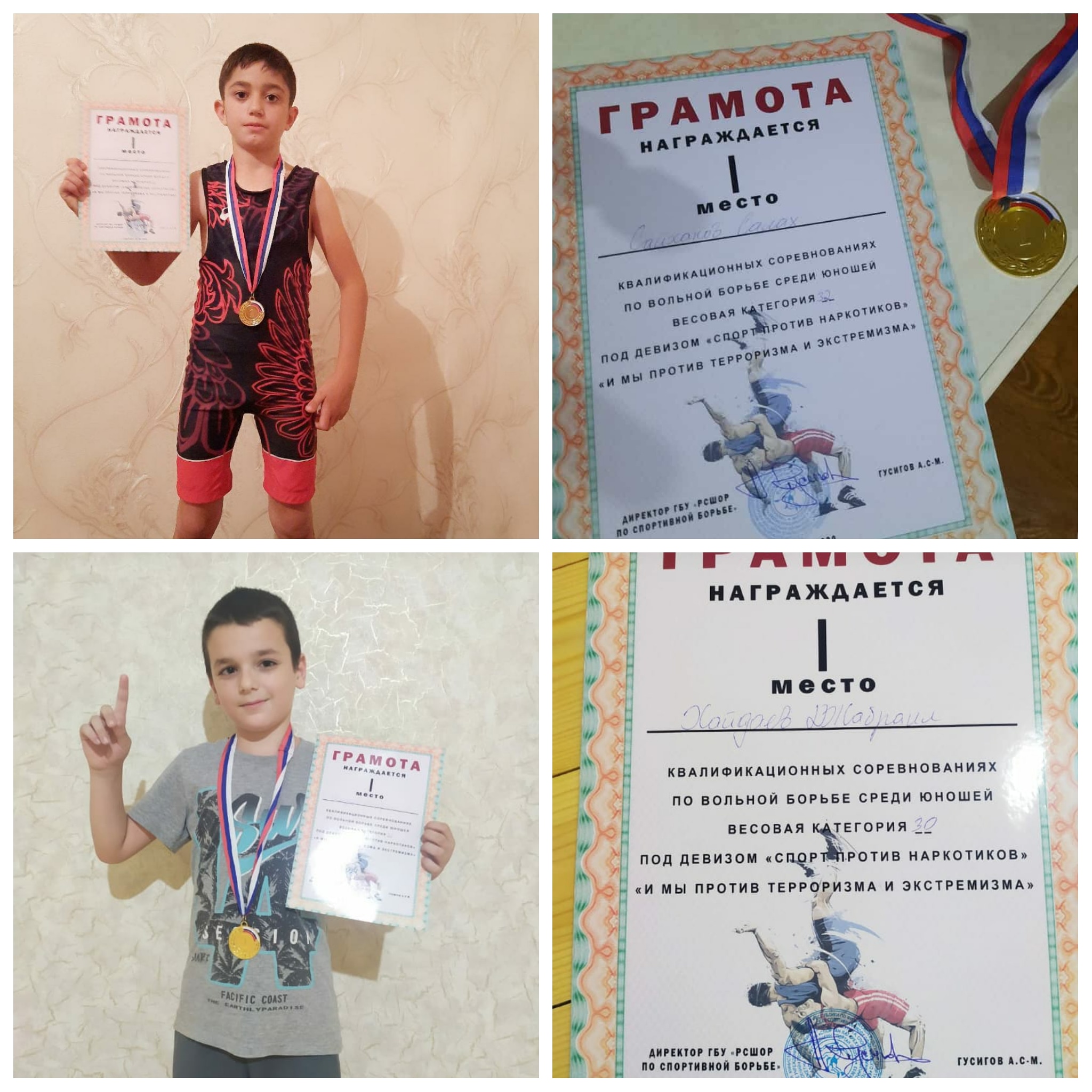 Ученик 5 "б" класса МБОУ "Гудермесская СШ 7" Сайханов Салах одержал уверенную победу в соревнованиях по вольной борьбе среди юношей в