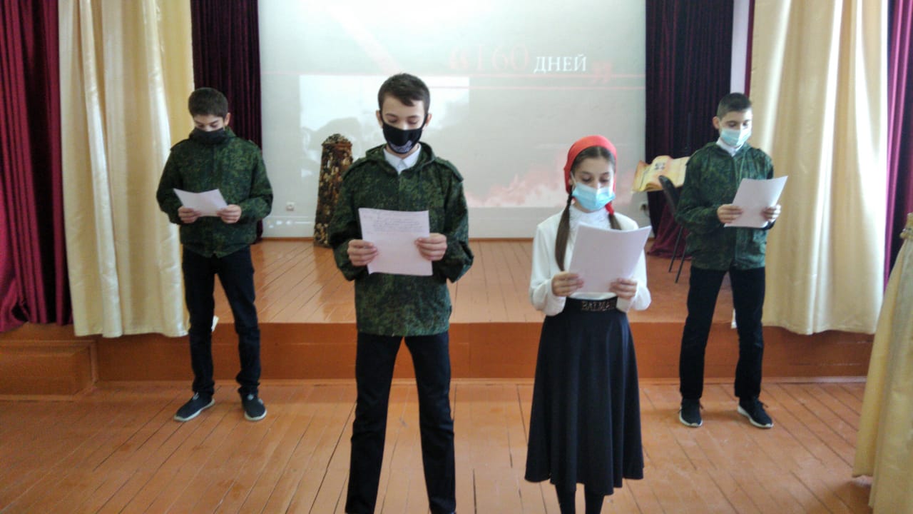 12.10.2020В целях воспитания чувства патриотизма и гордости за свою страну у подрастающего поколения и во исполнение письма министра образования и науки ЧР И.Х. Байсултанова от 02.10.2020 г.№2297/07-43 сегодня в МБОУ «Гудермесская СШ №7» проведены открытые классные часы, посвящённые Дню разгрома советскими войсками немецко-фашистских войск в битве за Кавказ.