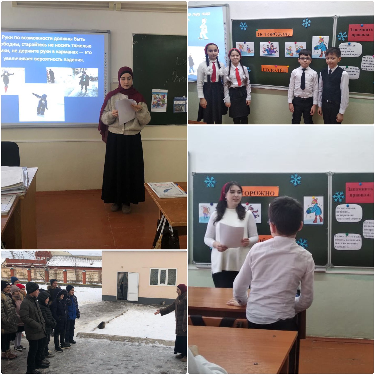 20.02.2021В МБОУ "Гудермесская СШ 7" проведены классные часы на тему:"Осторожно, гололёд!"