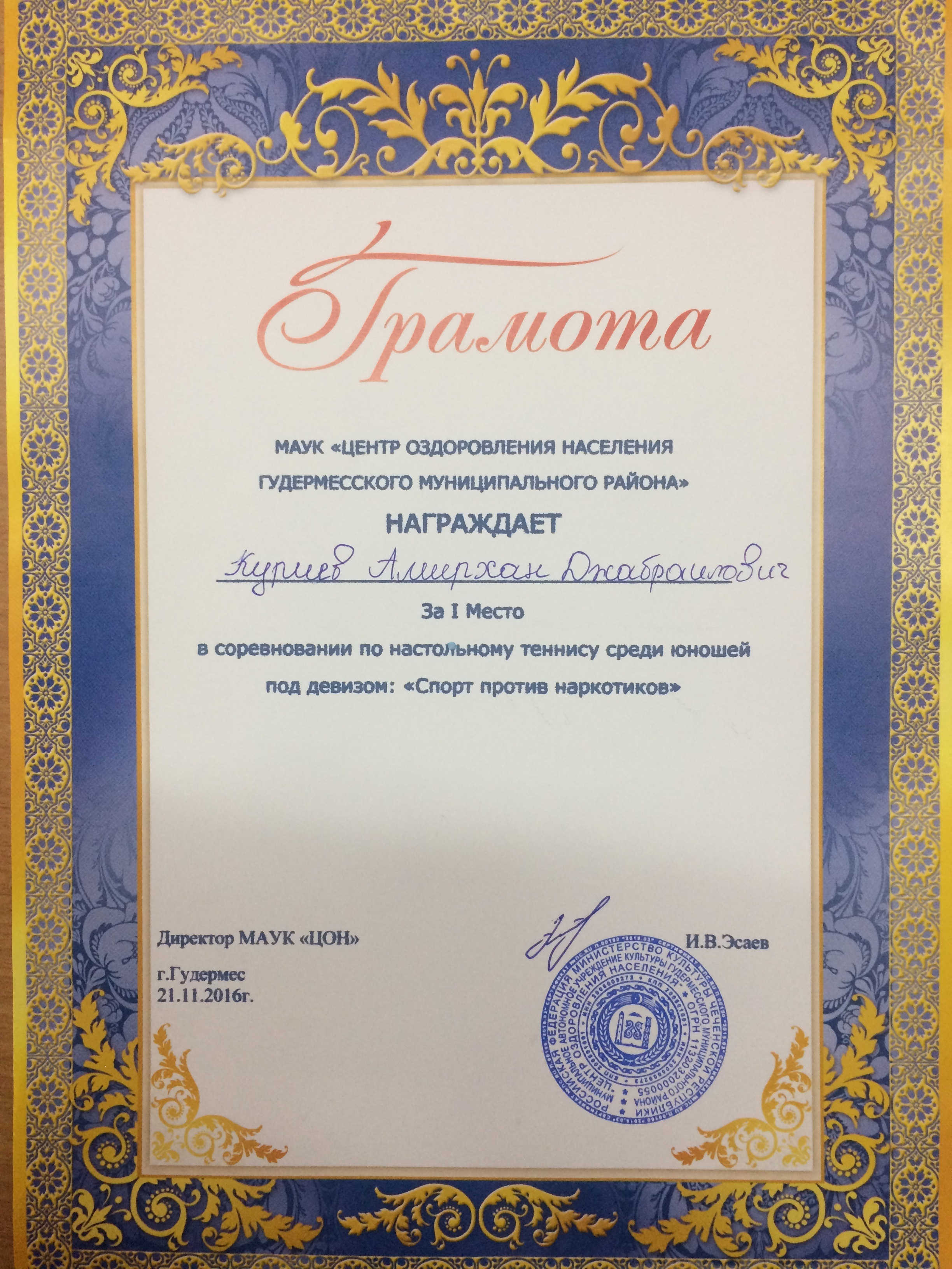 23.11.201623.11.2016 года в г. Гудермес прошли районные соревнования по настольному теннису, организованные МАУК "Центр оздоровления населения Гудермесского муниципального района".