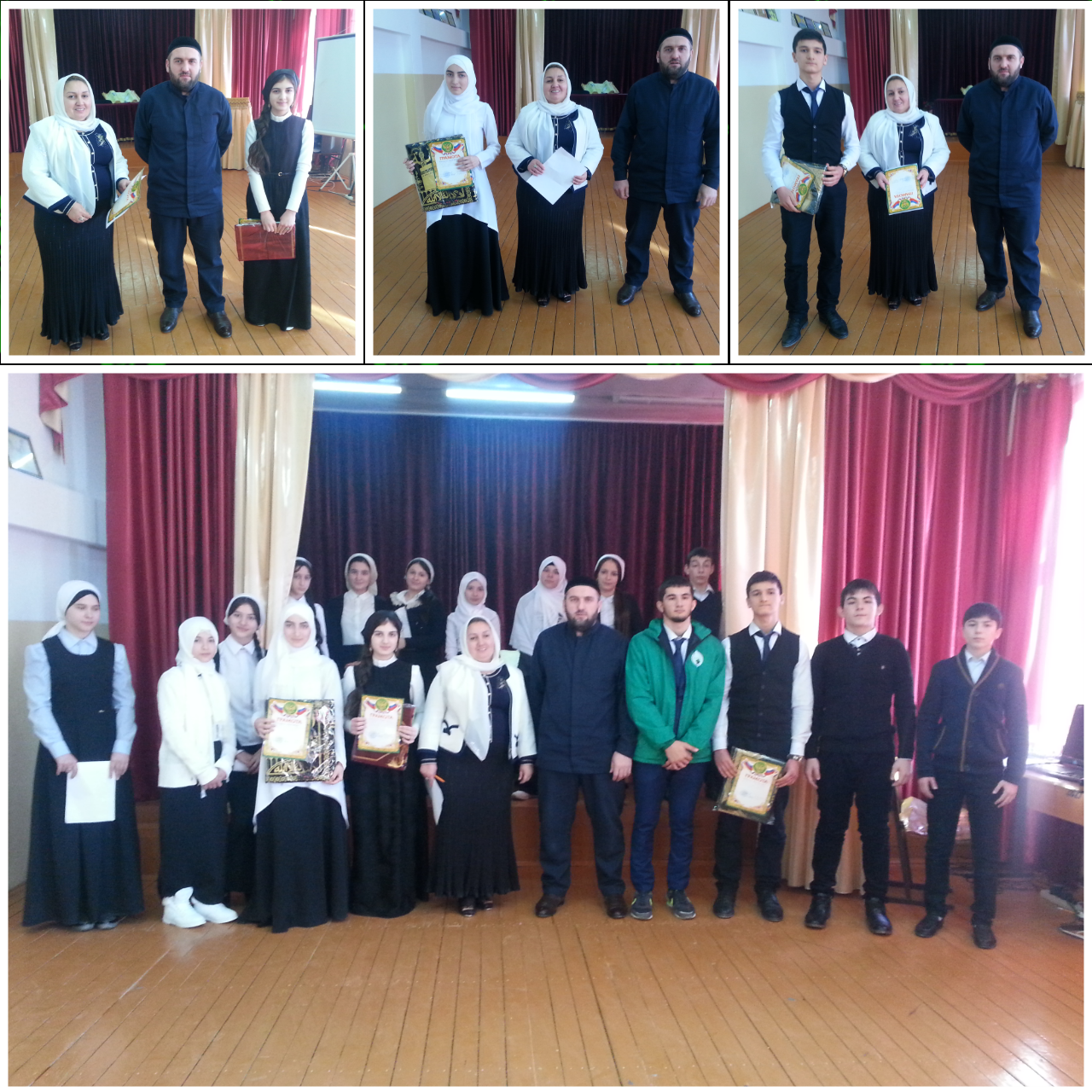 Победители награждены грамотами и подарками. Организатор мероприятия Хайдаев Иса Мовладиевич подчеркнул, что с такими знаниями ребята всегда будут на правильном и истинном пути. Директор школы Зарета Хусаиновна поблагодарила педагога-организатора по ДНВ и Р Хайдаева И.М. и всех учащихся, принявших участие в конкурсе, приуроченному ко Дню рождения Пророка Муххамада (с.а.в.), и пожелала дальнейших побед.