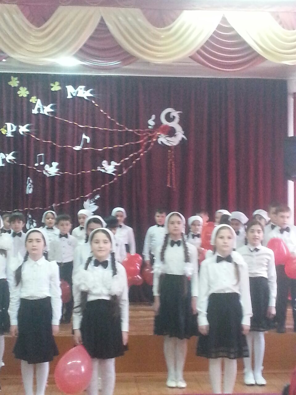 Праздничную программу открыла Шаипова А.К., которая пожелала всем присутствующим женщинам и девушкам любви, добра и хорошего настроения. Учащиеся прочитали стихотворения о прекрасном весеннем дне, о мамах, бабушках. Учащиеся подготовили очень интересные, творческие и разнообразные номера. На протяжении всего праздника звучали шуточные и серьёзные стихотворения, исполнялись песни, разыгрывались сценки, Ученики 3А класса вручили всем присутствующим мамам сделанные своими руками букеты цветов и весь зал наполнился тёплыми улыбками. В первых рядах в зрительном зале сидели ветераны педагогического труда, которые в лучших традициях школы всегда являются почетными гостями праздничных мероприятий. В конце праздника прозвучали поздравления и пожелания от классного руководителя 5А Адухажиевой З.И., которые затронули каждого присутствующего. Мероприятие удалось на славу!