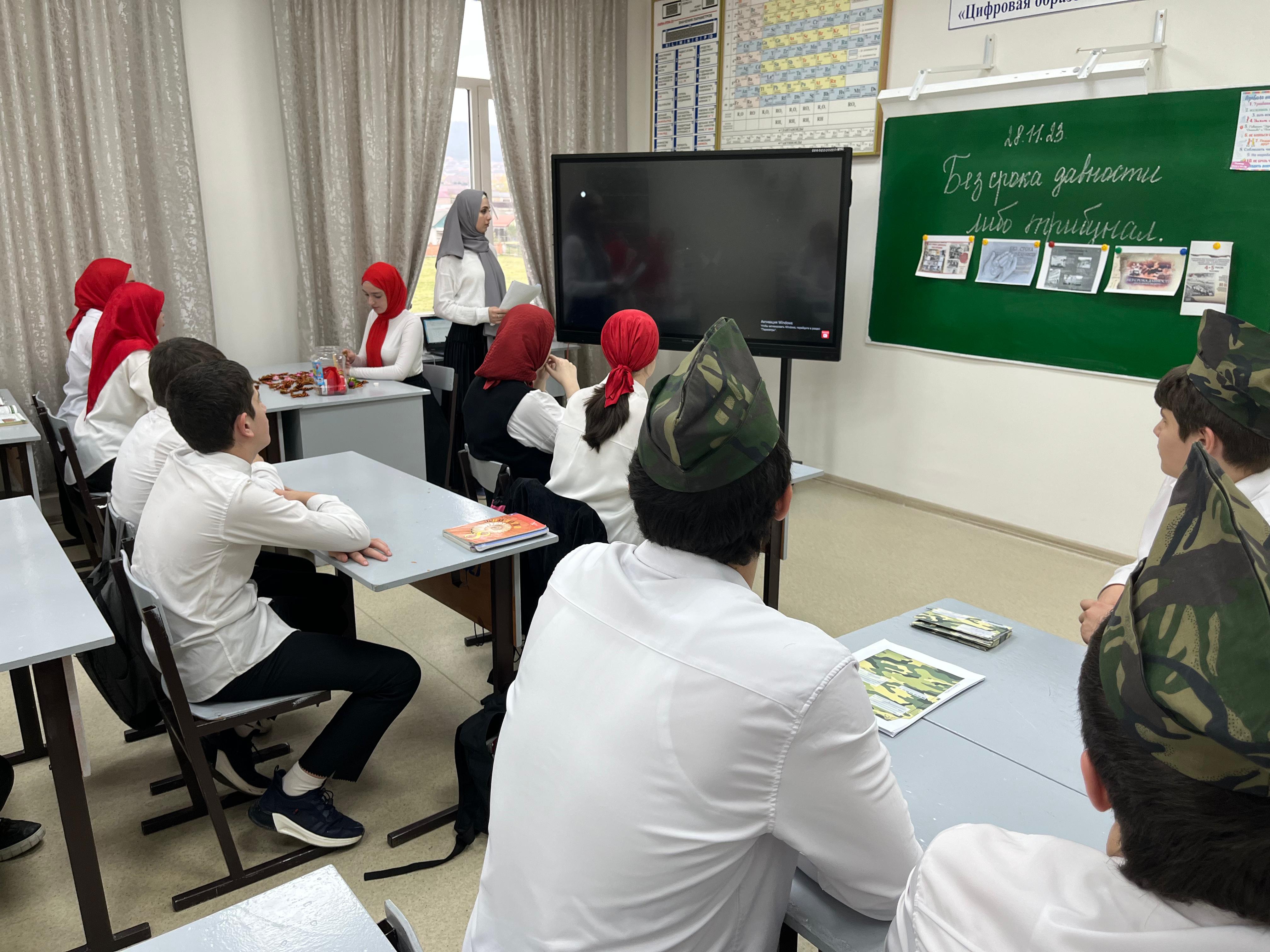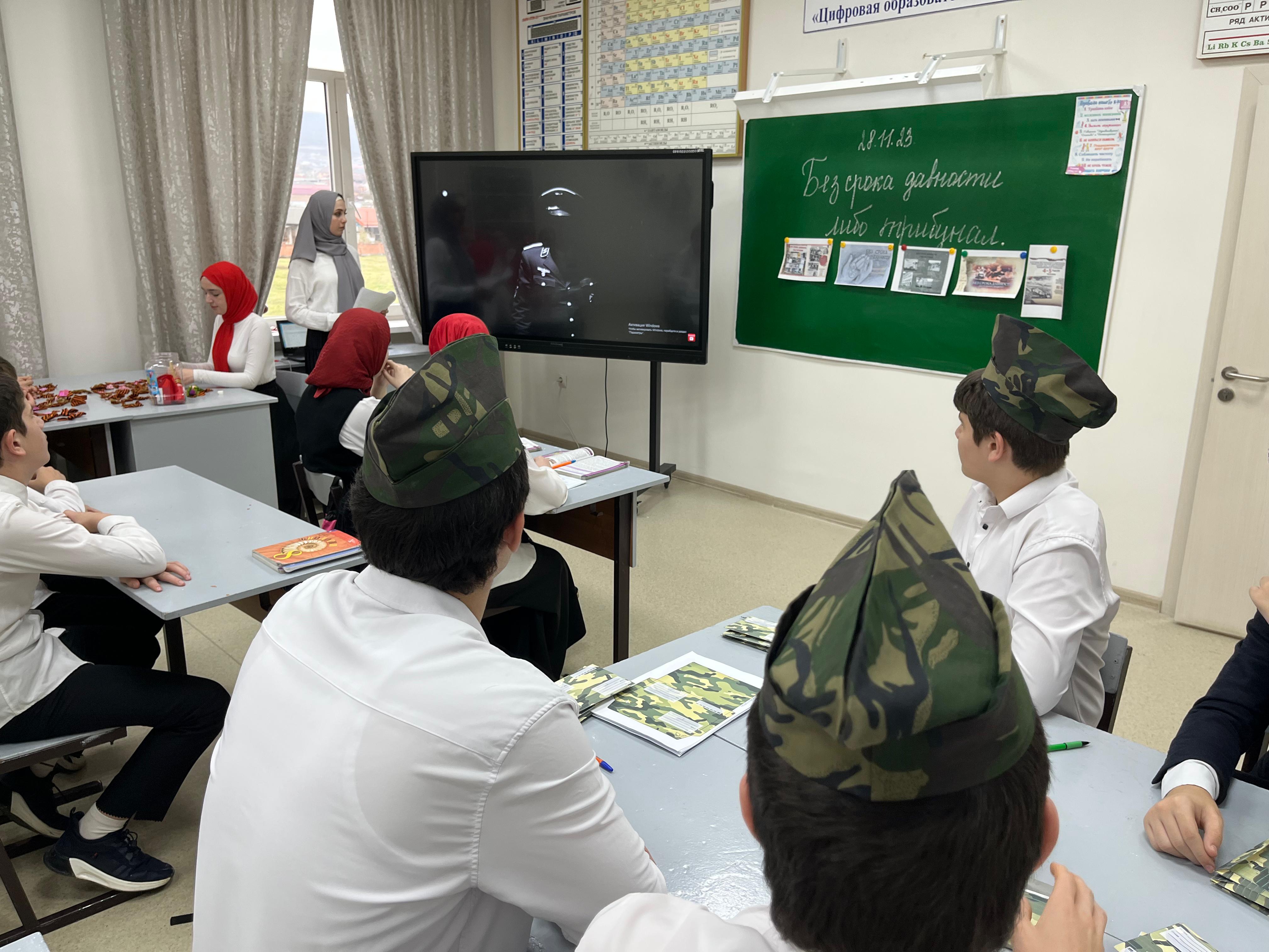 28.11.2023В рамках проведения общешкольных мероприятий 28.11.2023г. в МБОУ «Гудермесская СШ№7» провели открытый урок на тему «Без срока давности либо трибунал» преступлений против советского народа, совершенных нацистами и их пособниками в годы Великой Отечественной войны. Цель урока является сохранение исторической правды о преступлениях нацистов и их пособников в отношении мирных советских граждан в годы Великой Отечественной войны на оккупированной территории. И поэтому сегодня в школе на уроке обществознания для учащихся 10 класса учитель истории и обществознания Сакаева Лимда Шамхановна провела урок на тему «Без срока давности либо трибунал» в память жертв геноцида советского народа от немецко-фашистских захватчиков в годы Великой Отечественной войны. В начале урока Лимда Шамхановна объяснила детям, что такое геноцид, а затем они смотрели с обсуждением видеофильм