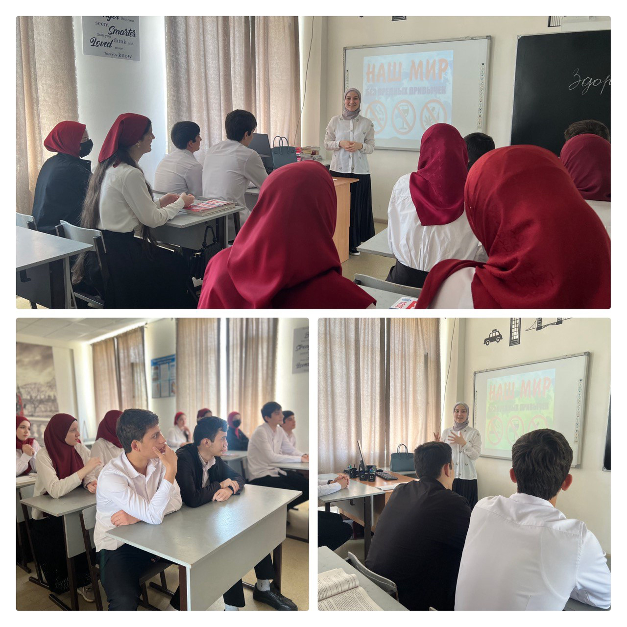 13 апреля в МБОУ Гудермесская СГ+Ш 7 была проведена беседа с облучающимися 7-8 классов на тему: "Здоровый образ жизни".