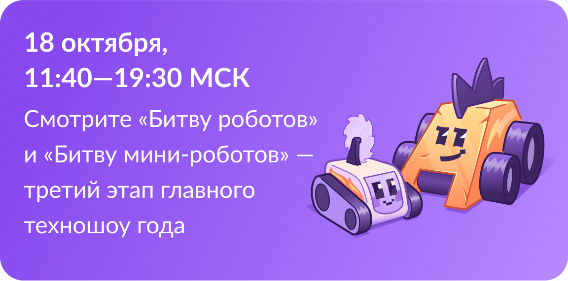 13.10.2025БИТВА РОБОТОВ — МЕЖДУНАРОДНЫЙ ЧЕМПИОНАТ, ГДЕ РОБОТЫ СРАЖАЮТСЯ В ЗАХВАТЫВАЮЩИХ ПОЕДИНКАХ. Это место, где креативность встречается с технологиями, а мечты о будущем становятся реальностью. Машинами управляют команды разработчиков — опытные инженеры и молодые специалисты из разных стран. Чемпионат объединяет инженеров разных направлений, давая им шанс проявить себя в мире робототехники.