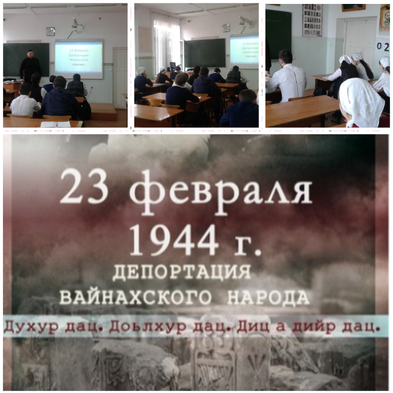 Хайдаев И. М. рассказал учащимся о событиях того холодного февральского утра, когда ни в чём неповинные, беспомощные старики, женщины, деты были объявлены «врагами народа» и выселены с родной земли. Долгих тринадцать лет наш народ находился в изгнании в далёком Казахстане.
