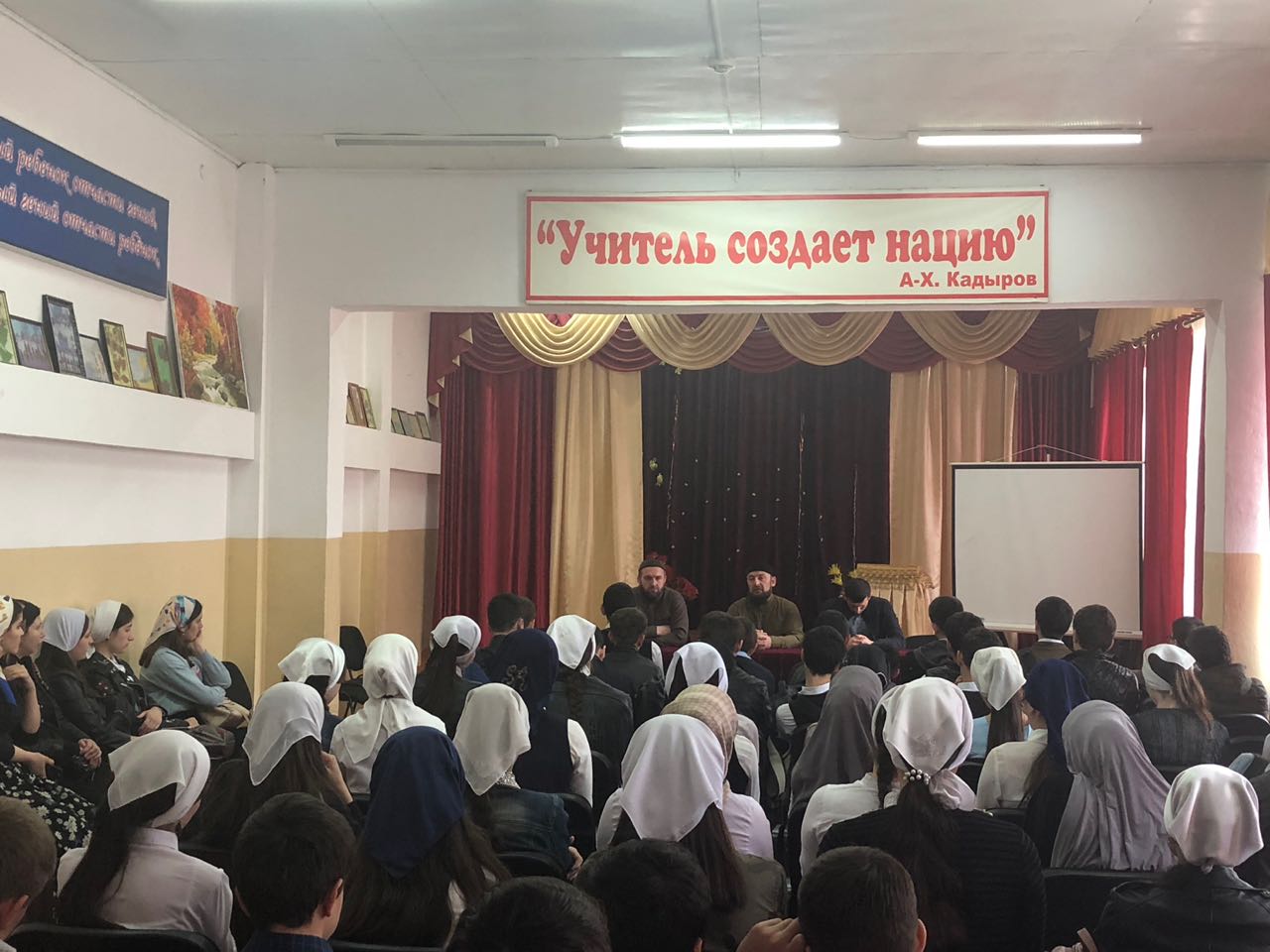Во время беседы гостей с учащимися школы обсуждались злободневные проблемы современности: табакокурение, алкогодизм и наркомания, противоречащие канонам Ислама. В беседе Амир Магомедович объяснил учащимся, что Коран запрещает употреблять все, что наносит вред здоровью человека. Нужно остерегаться употреблять любые вещества, опьяняющие человека, нужно беречь здоровье, самая важная для подростков задача-это соблюдать каноны Ислама, быть примерными детьми для своих родителей.
